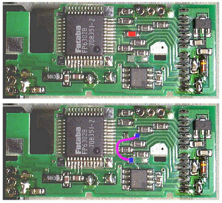 This procedure will VOID the warranty on your Futaba Receiver so it should be performed by a very experienced technician. When VANTEC supplies receivers with this modification completed VANTEC warrantees the receiver.